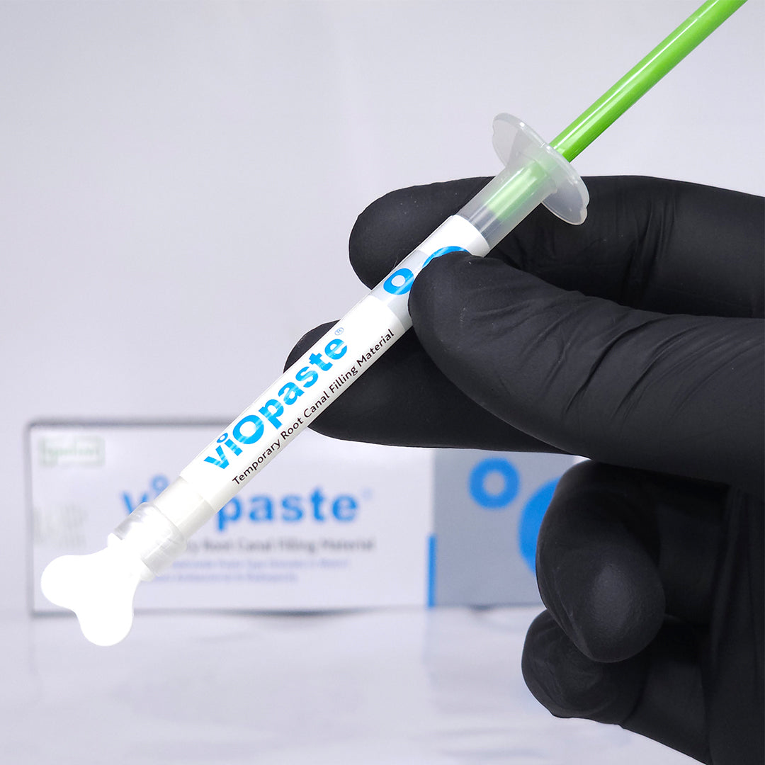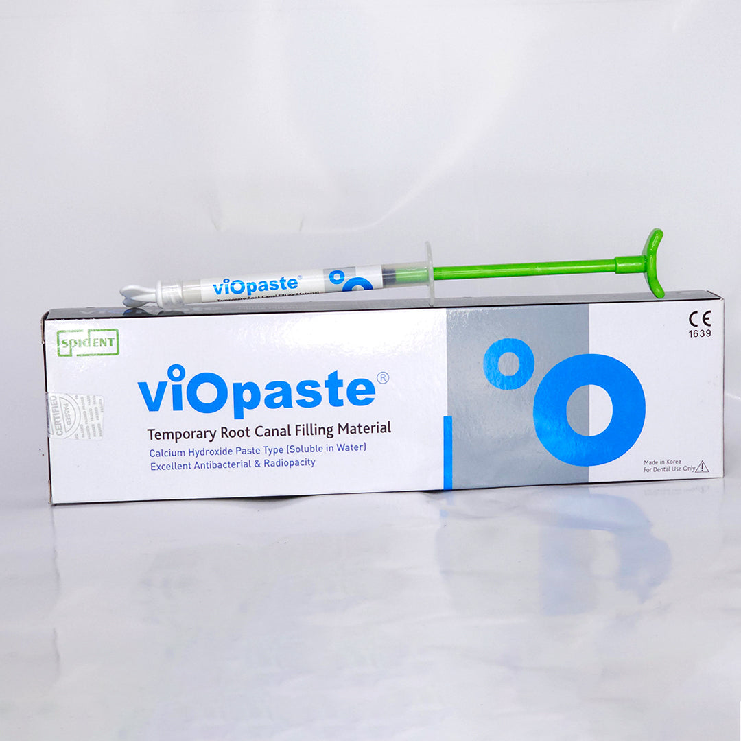 Viopaste es un material de relleno temporal para conductos radiculares, formulado con Hidróxido de Calcio y Sulfato de Bario. Esta pasta premezclada facilita su aplicación y garantiza resultados consistentes en tratamientos endodónticos. Sus propiedades hidrosolubles y antibacterianas contribuyen a la protección y desinfección del conducto radicular, asegurando un ambiente óptimo para la recuperación dental. Ideal para profesionales que buscan eficacia y confianza en el manejo de conductos.