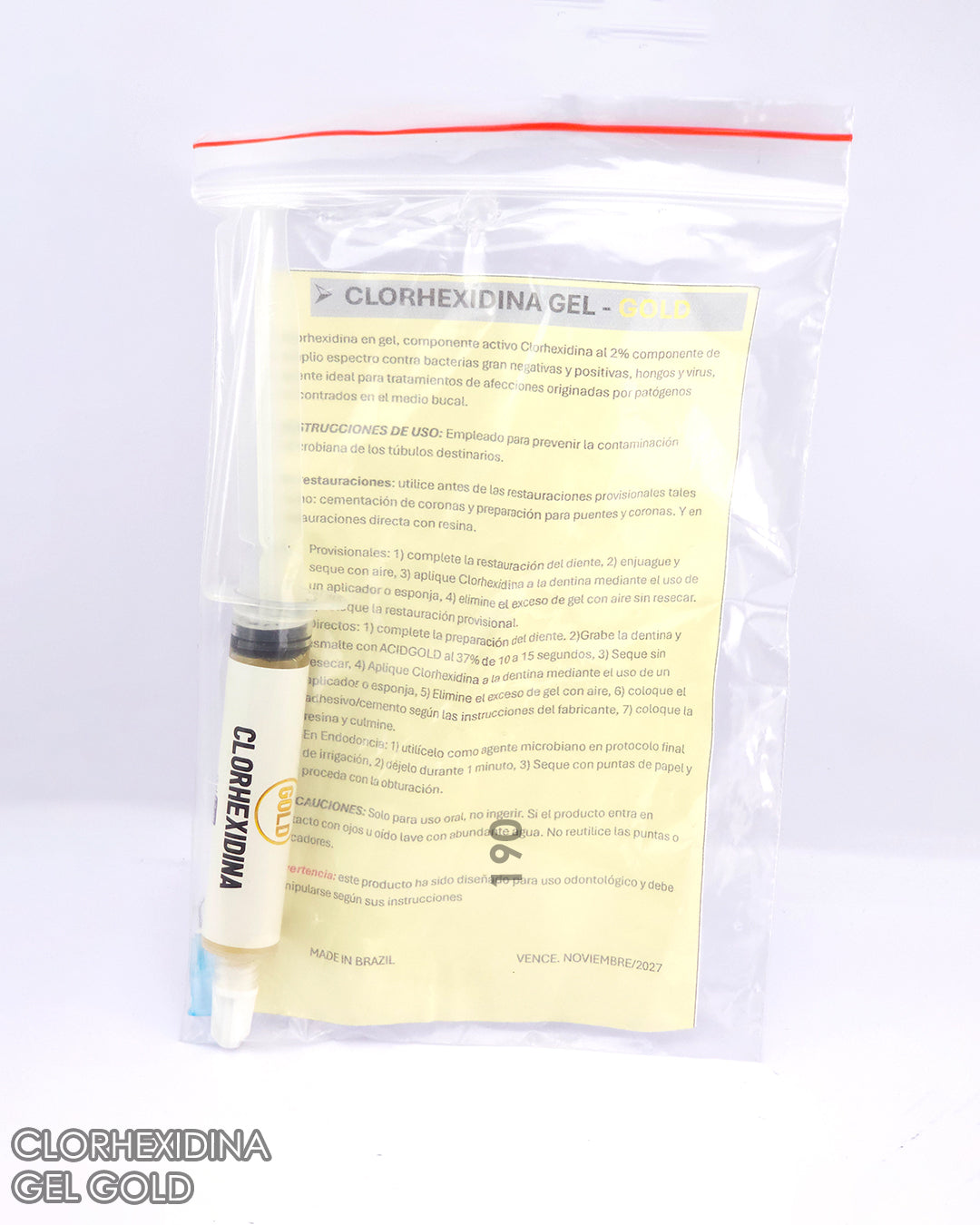 Clorhexidina al 2% en presentación gel Gold ofrece una concentración terapéutica estándar para aplicaciones clínicas exigentes. El formato de jeringa permite dosificación controlada y acceso directo a sitios periodontales, periapicales y de extracción. Su matriz gelificada prolonga el contacto con tejidos, maximizando la actividad antimicrobiana contra patógenos orales. Indicada para desinfección preoperatoria, tratamiento de bolsas periodontales y manejo de infecciones endodóncicas. Garantiza resultados predecibles en protocolos de control de infección.