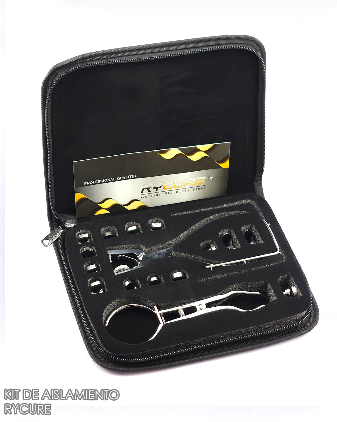 El Kit de Aislamiento RYCURE incluye 14 grapas variadas, dos arcos de Young para niño y adulto, un perforador de goma dique y un porta grapa. Esta combinación permite un aislamiento efectivo y adaptable en procedimientos dentales, facilitando la aplicación precisa del dique de goma y optimizando el acceso al campo operatorio para un mejor control y seguridad durante el tratamiento. Ideal para profesionales que buscan calidad y funcionalidad en sus herramientas de aislamiento.