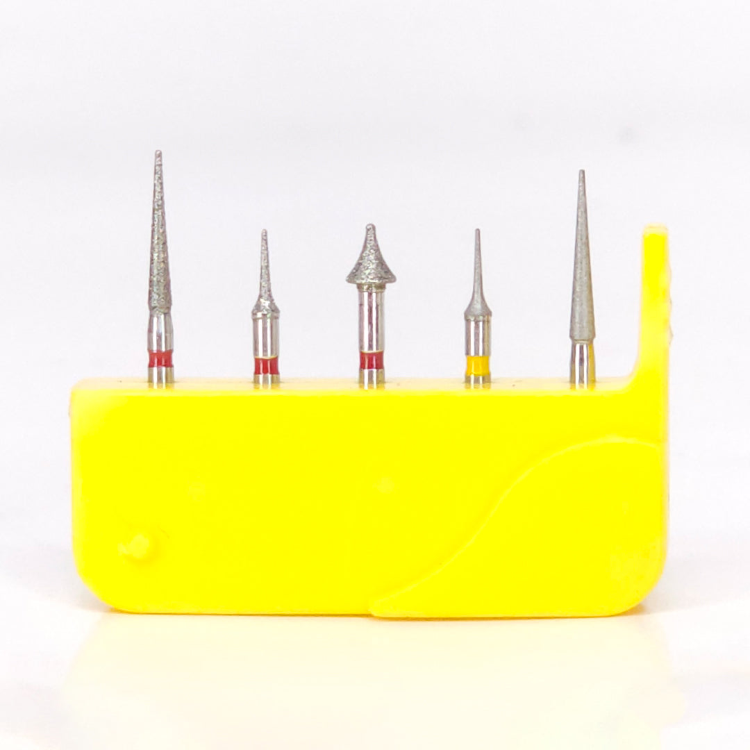 El Kit de Fresas de Diamante para Interproximal x5 está especialmente diseñado para facilitar la preparación y el ajuste en espacios interproximales con alta precisión. Estas fresas ofrecen un desgaste controlado y una excelente durabilidad, permitiendo un acabado óptimo en zonas difíciles de acceso. Ideal para profesionales que requieren herramientas fiables para tratamientos meticulosos en odontología.