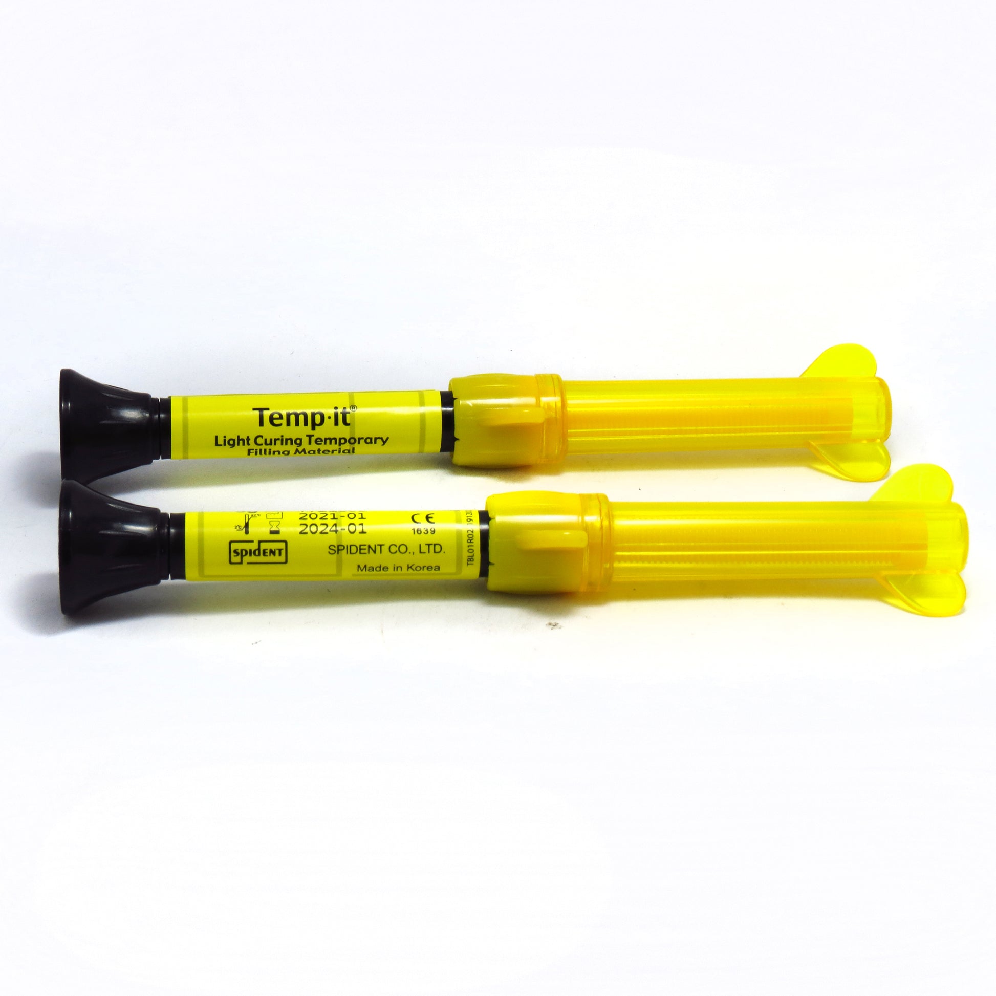Temp-it Spident es un material restaurador temporal diseñado para proteger y sellar cavidades dentales durante procedimientos clínicos. Disponible en azul y amarillo, ofrece manipulación sencilla y adecuada resistencia para asegurar un sellado temporal efectivo. Ideal para uso profesional, garantiza protección óptima de la cavidad hasta la colocación del material definitivo, facilitando el tratamiento y manteniendo la integridad dental.